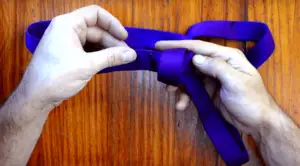 El nudo cinta es muy fácil de armar; haciendo un nudo simple en unos de los extremos y luego haciendo lo mismo con el otro extremo es dirección contraria. Las puntas deben como mínimo estar 10 cm excedidas.